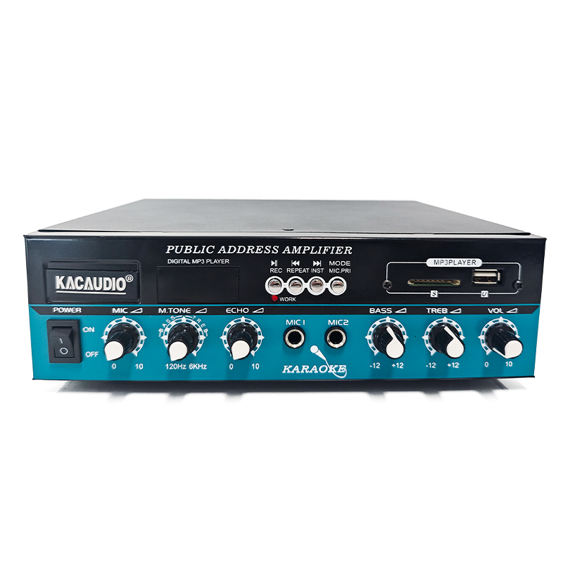 10. Features: Display screen, dual microphone inputs with microphone priority function, single audio input, single audio output, bass/tone adjustment, reverb function, USB/SD card support, wireless Bluetooth capability