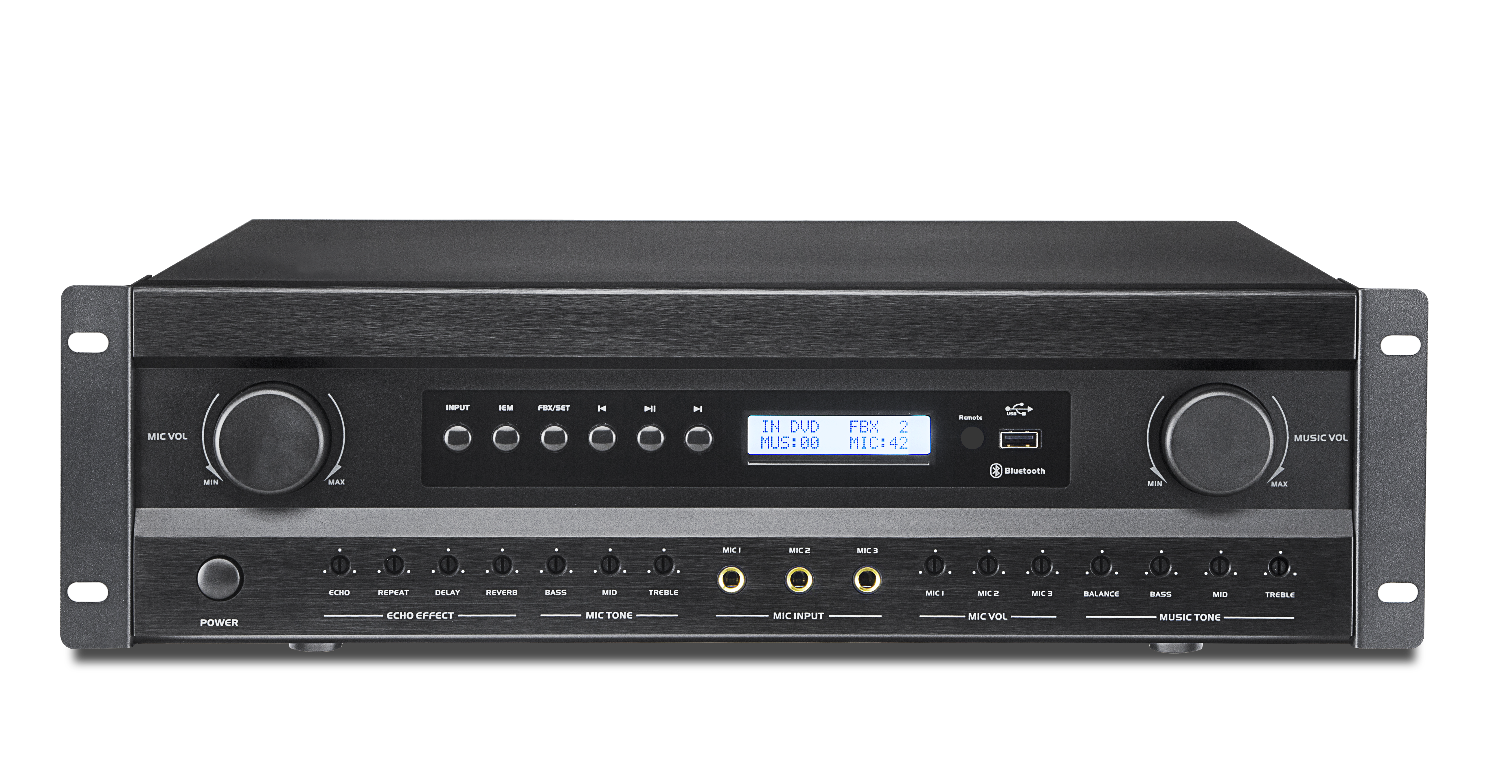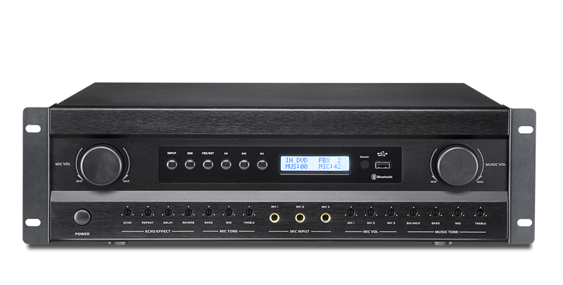 KCK-8200 2×200W Professional Karaoke Power Amplifier 3U Chassis DSP Digital Reverberation Bluetooth 5.0 Optical Coaxial ARC USB SD Microphone Anti-Howling Amplifier